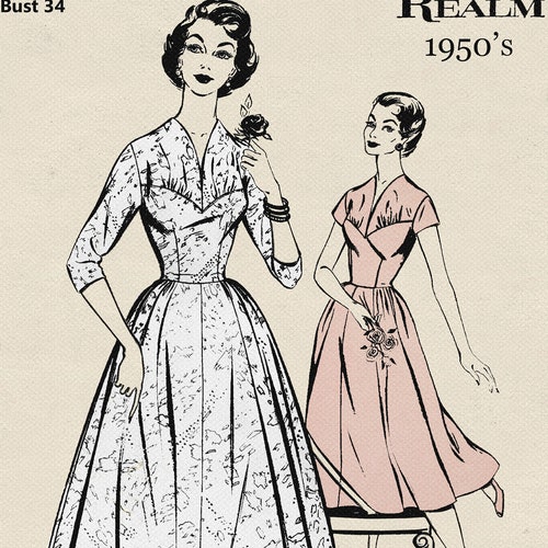 1950 S Tea Length Wedding Dress Pdf Sewing Pattern Bust 34 Etsy