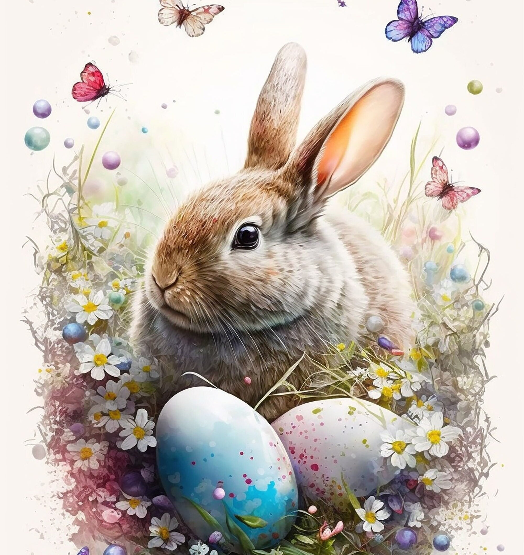 Digital Watercolor Painting Easter Bunny Wall Decor Etsy