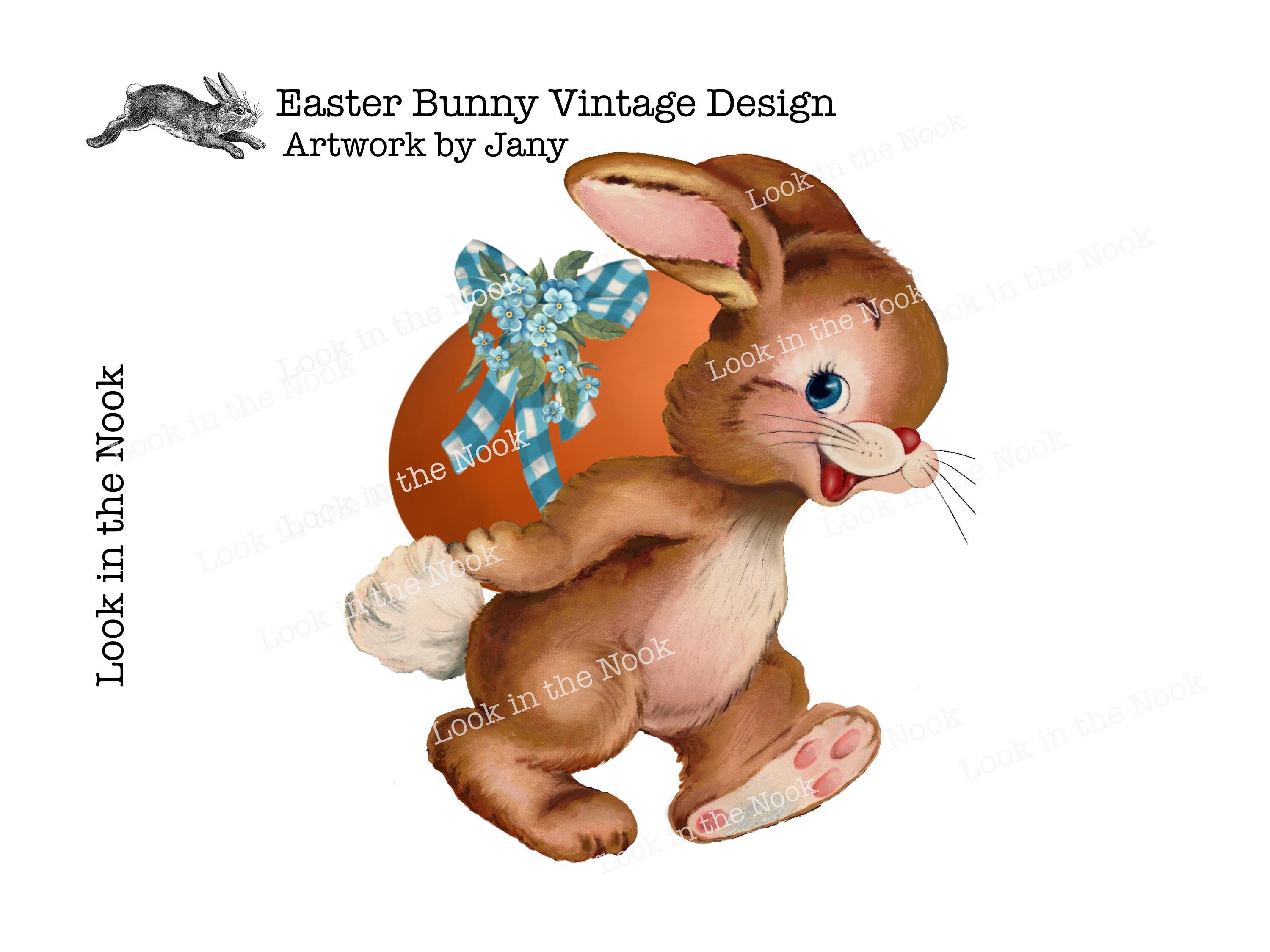 Easter Bunny Egg Clip Art Graphic Designsretro Artinstant Etsy