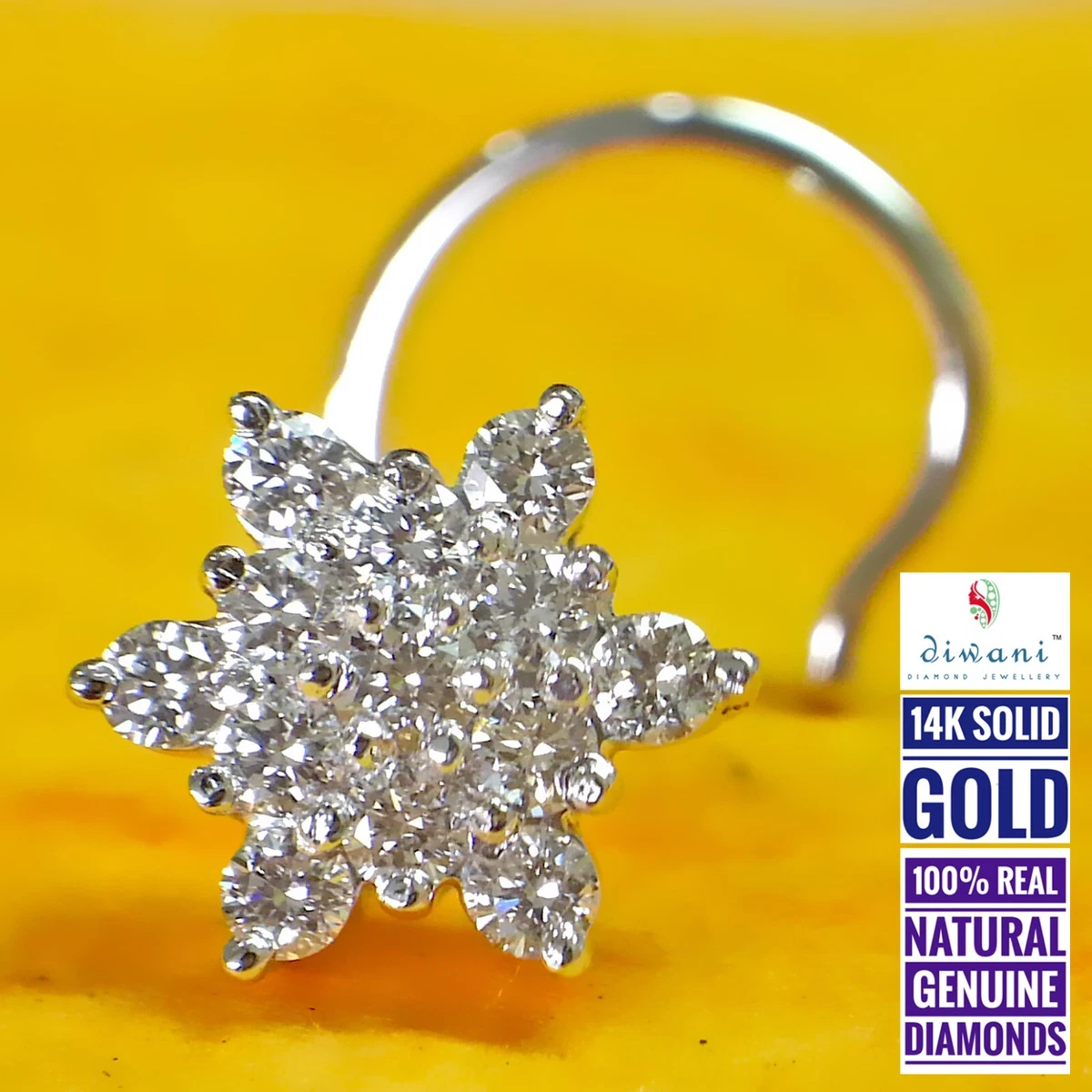 Natural 13 Diamonds Wedding Flower Nose Piercing Pin Ring Stud 14k Gold Ebay